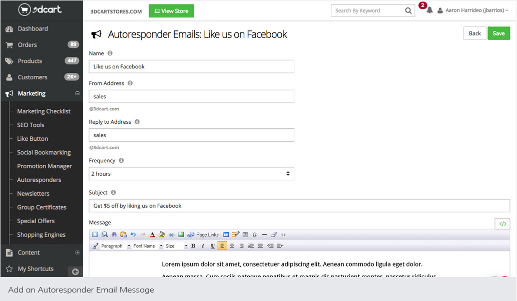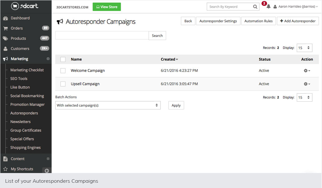 There are two components that need to be set up: the Autoresponder itself, and the Automation Rules. You can find complete, easy-to-follow instructions on the Shift4Shop Knowledgebase.