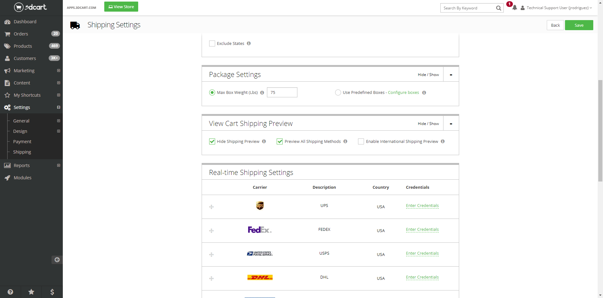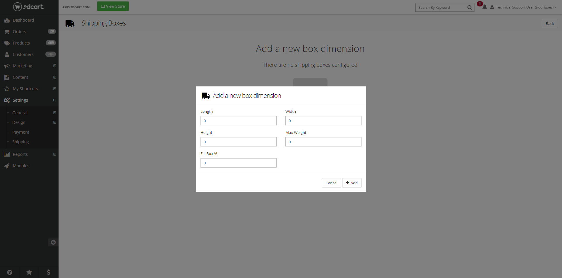 - Dimensional Shipping: Get the most accurate shipping rates for every order by defining the length, width, depth, and weight of all your products, alongside predefined box sizes. If you set up multiple predefined boxes, the correct size of box will automatically be selected based on the total weight and dimensions of all products in an order.