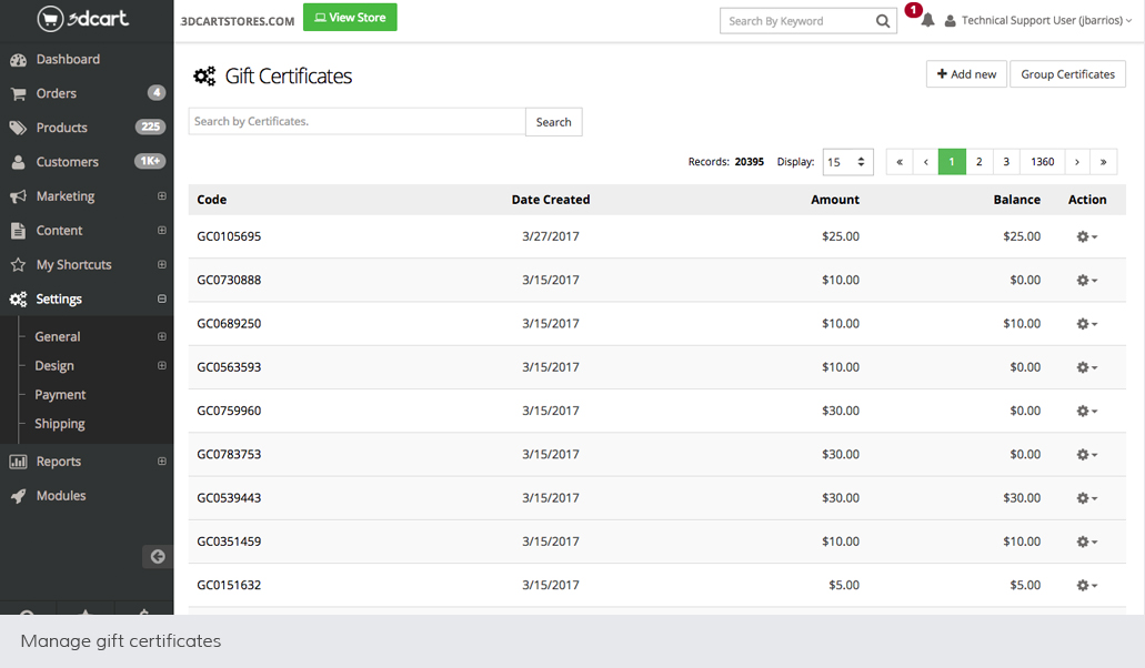 This built-in implementation of Gift Certificates in Shift4Shop’s platform makes the process easy and convenient for both you and your customers, helping you provide shoppers with more choices and leading to strong customer service.