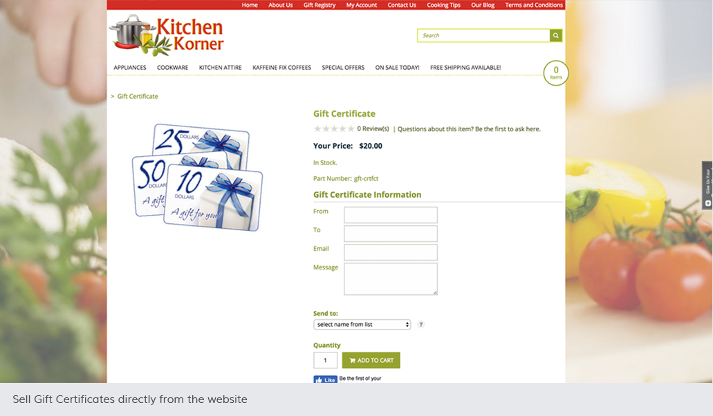 The gift certificate includes a code which the customer will enter into the store’s coupon code field, either on the View Cart page or during checkout.