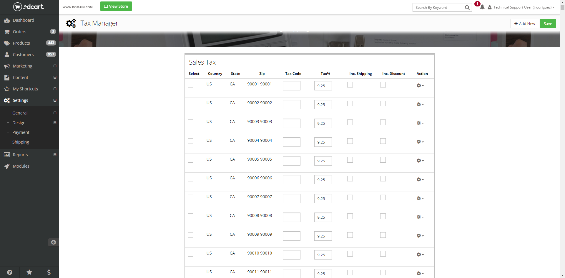 - Quickly add tax rates by country, state, and Postal Code/Zip