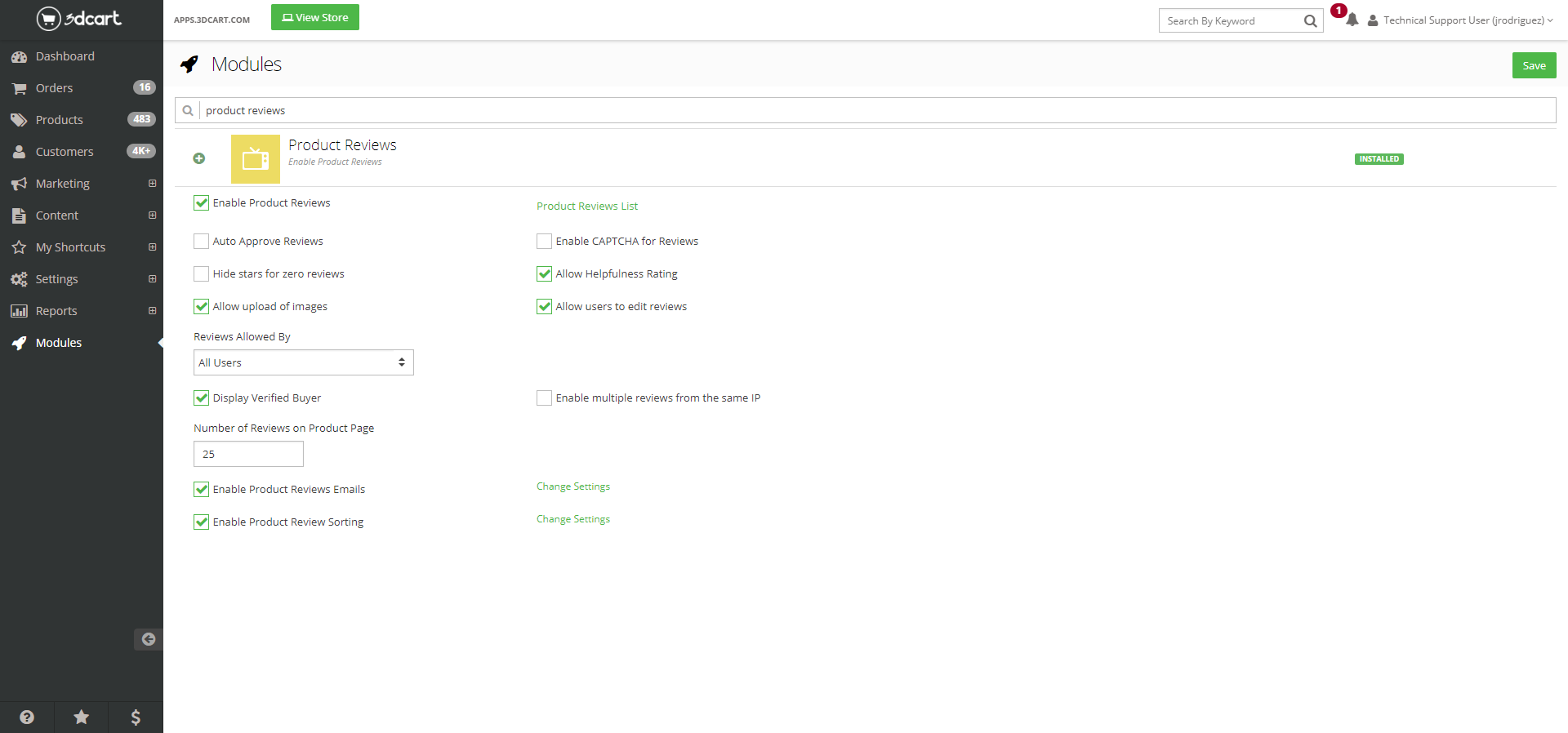 In your Shift4Shop Online Store Manager, click Products in the left-hand navigation and then click Reviews.