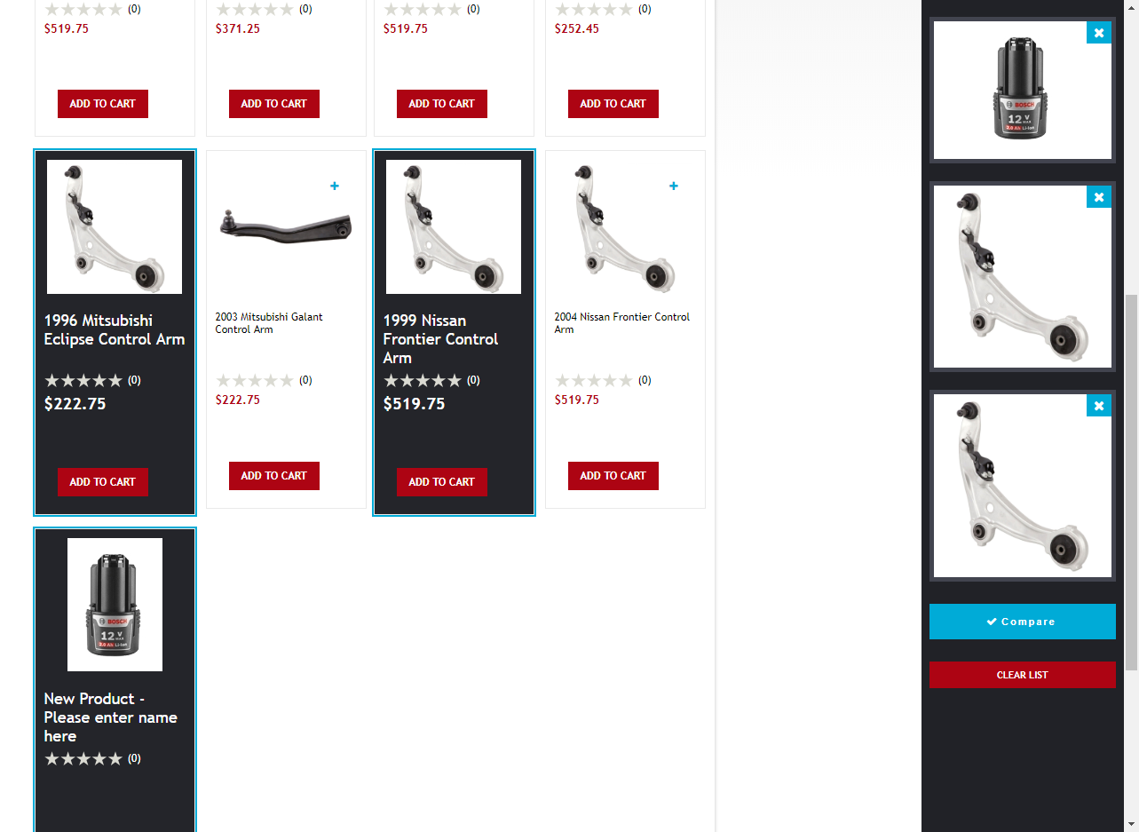 - Customers can compare up to 4 products at once across all the parameters you’ve activated