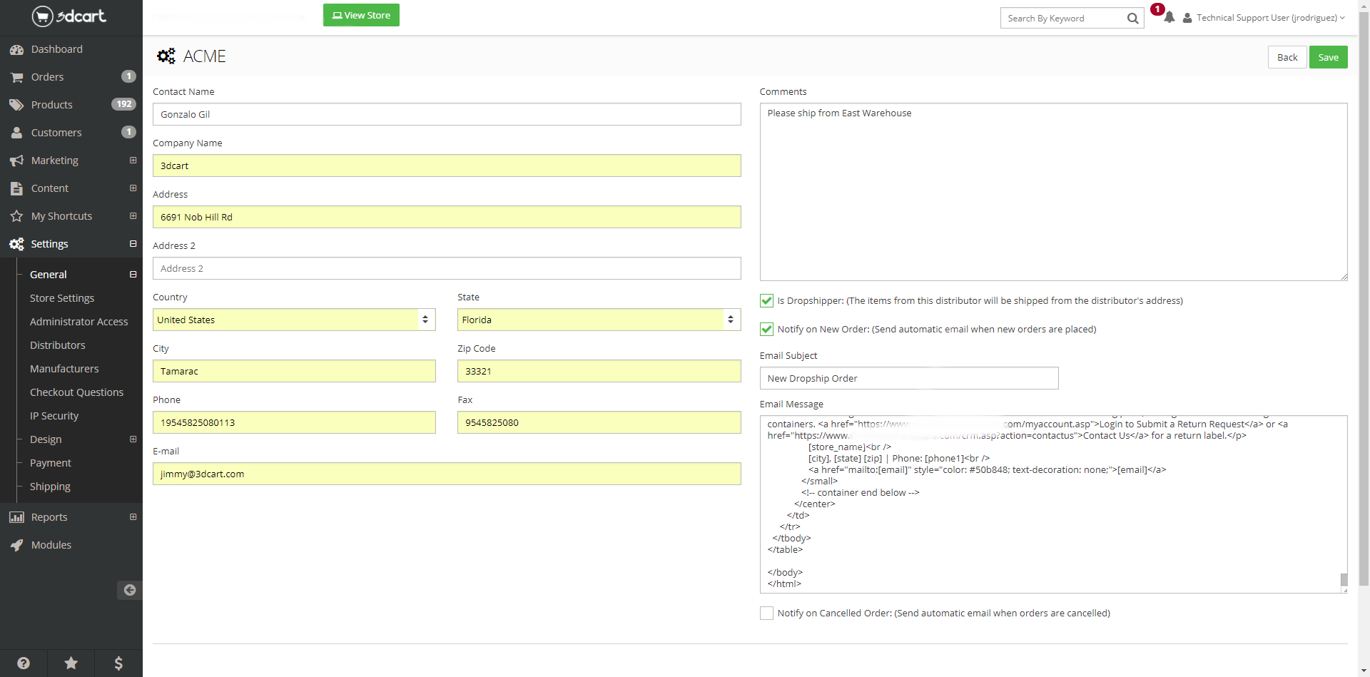 Shift4Shop makes drop shipping easy by including configurable options to instantly email a supplier when you receive a new order. You can also use the distributor’s address as the origin address for calculating shipping.