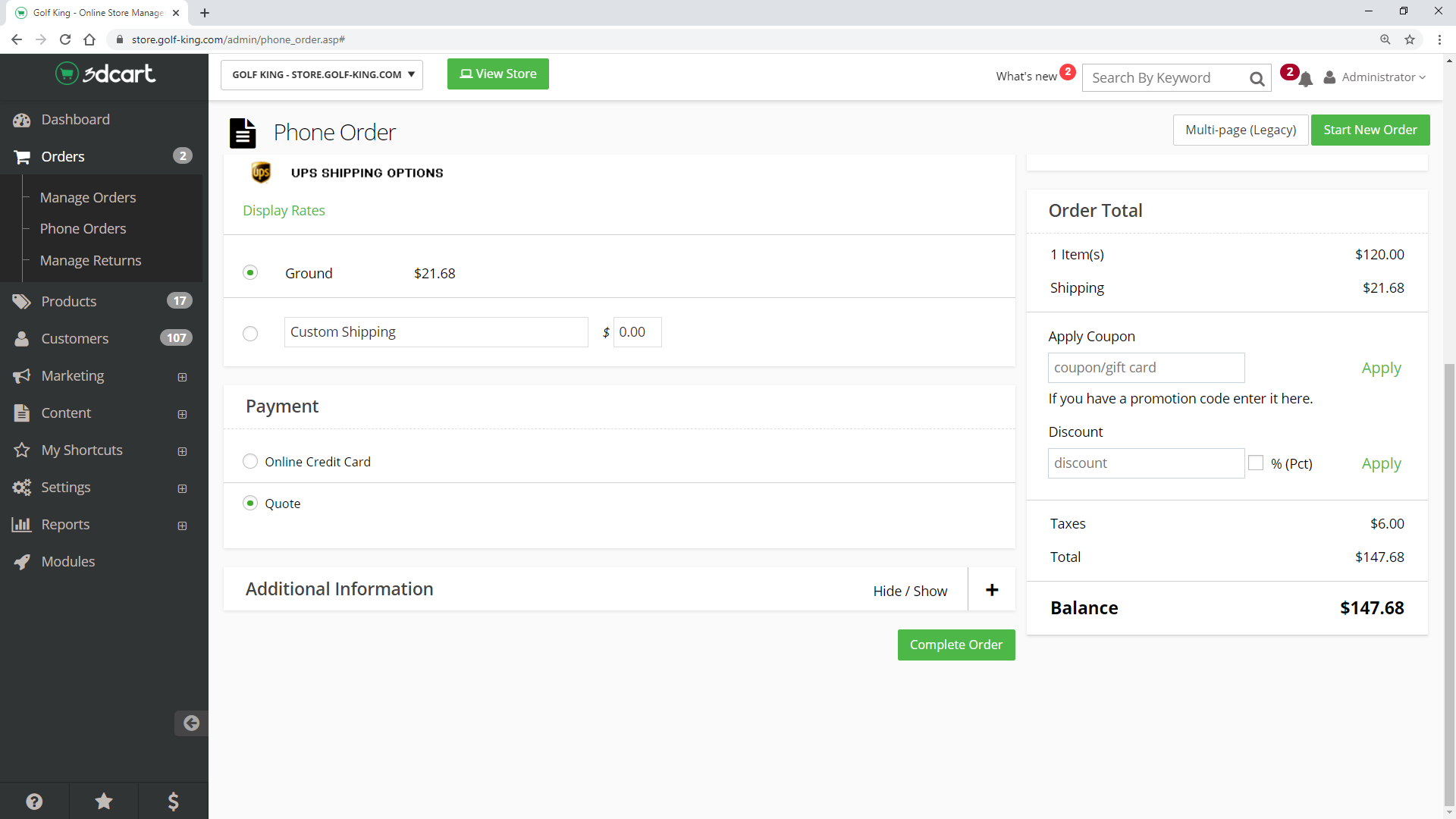 Depending on your business, you may need to offer quoted pricing to customers based on their specific needs. This is necessary for many types of custom orders, services, and more. Businesses using this model also need a method for the customer to accept the quote and make their payment. With Shift4Shop, you can create custom quote orders and accept payment for them using our built-in tools.