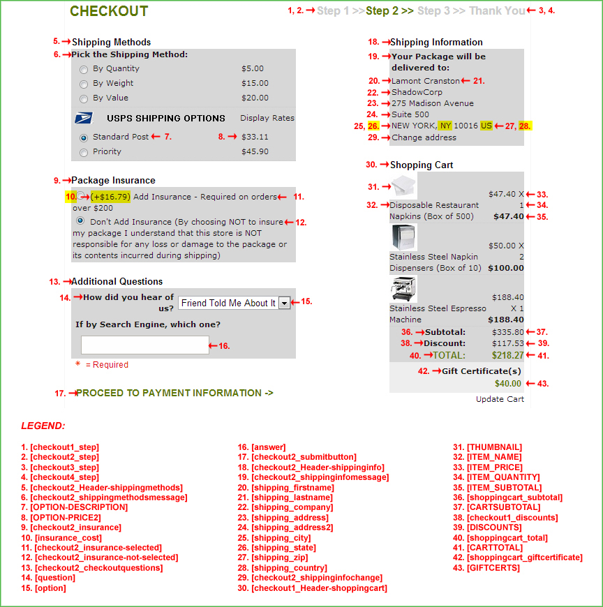 Note: Many of the following variables are dynamically inserted from your cart's Settings ->Design ->Store Language section.