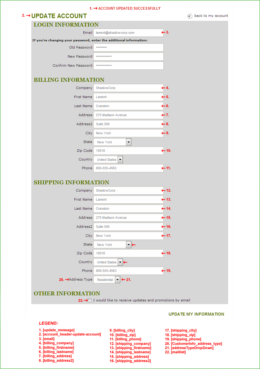 - [account_header-update-account] - Displays the "Update Account" Title of the Page. (See Settings ->Design ->Store Language)