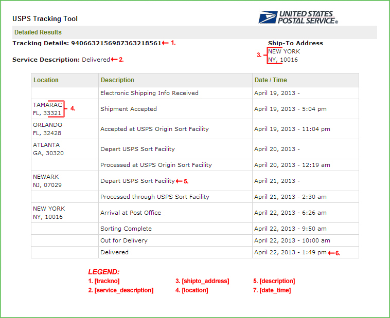 Purpose: This template is used to display the order's tracking information when tracking an order that is shipped via the United States Postal Service.