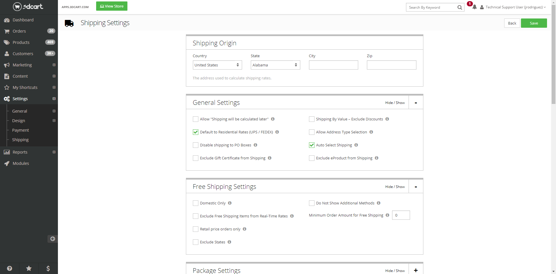- Dimensional Shipping: Get the most accurate shipping rates for every order by defining the length, width, depth, and weight of all your products, alongside predefined box sizes. If you set up multiple predefined boxes, the correct size of box will automatically be selected based on the total weight and dimensions of all products in an order.