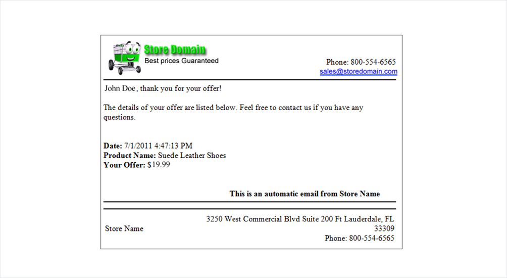 Customers love a good bargain, and what’s more of a bargain than letting them name their own price? Shift4Shop’s Make an Offer feature allows your customers to submit an offer when buying a product, which you can then accept or reject, or set to automatically approve if the offer is within your specified range. Bids that are too low will be automatically be rejected by default— the module takes care of everything.