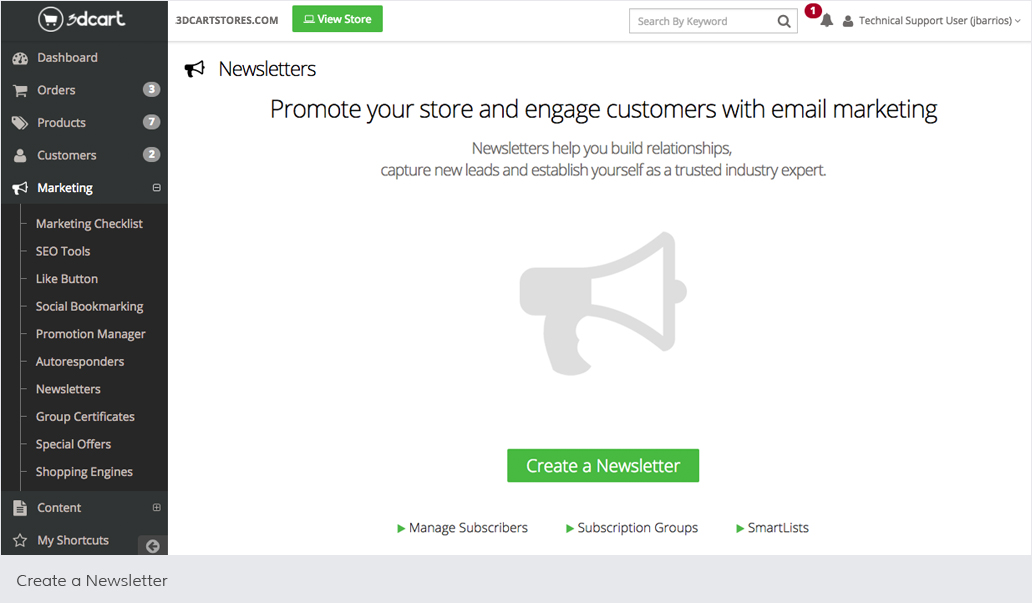The Newsletter feature can be found in your Shift4Shop Online Store Manager, in the left-hand navigation menu under Marketing and then Newsletters.
