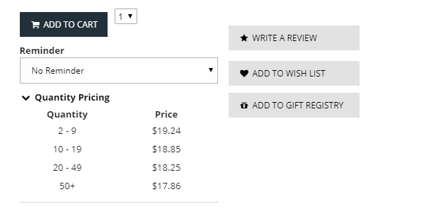 - Show a “Quantity Pricing” link on the product page that displays a graph to illustrate the price range per quantity to the customer