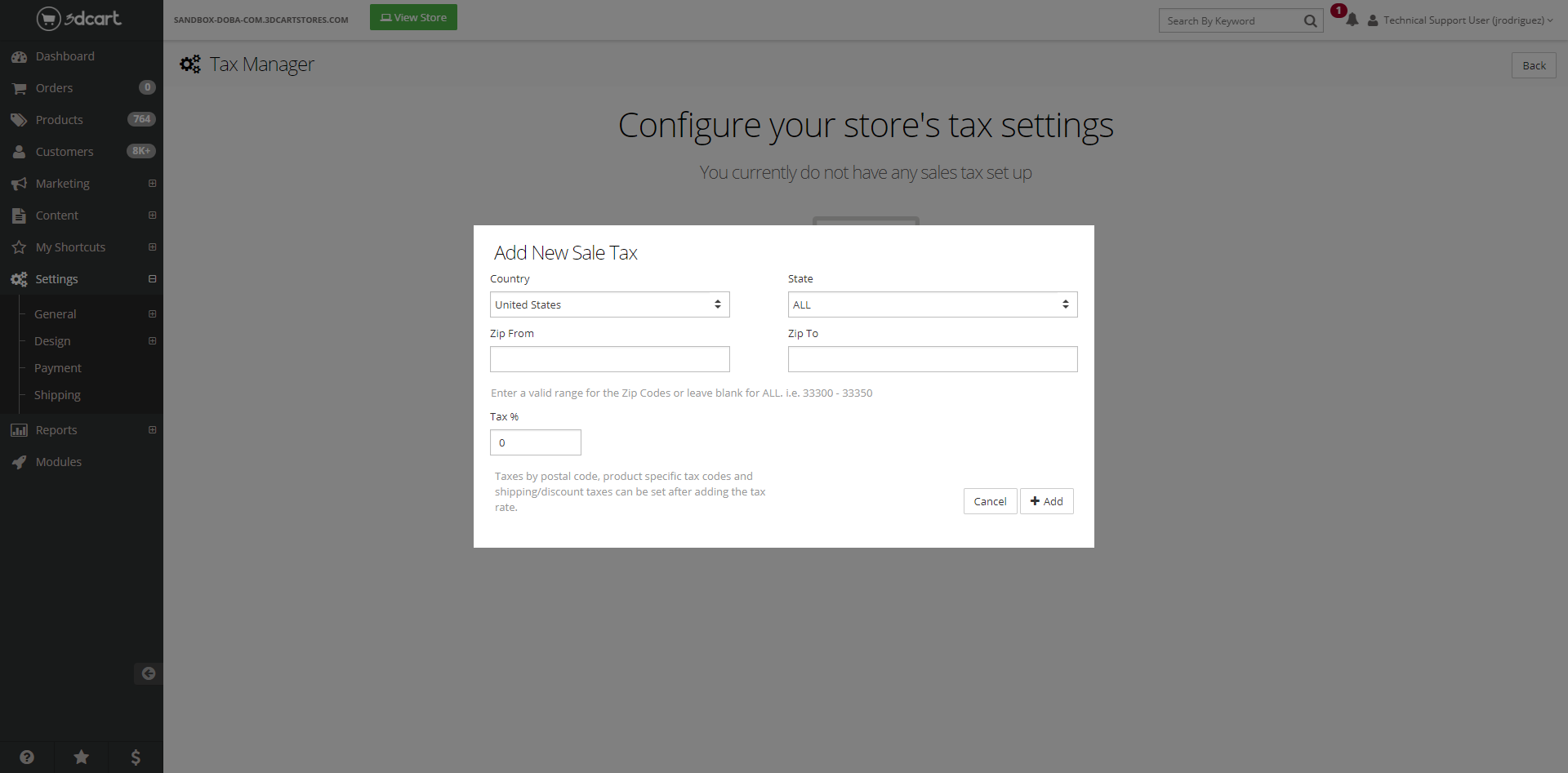 - Quickly add tax rates by country, state, and Postal Code/Zip