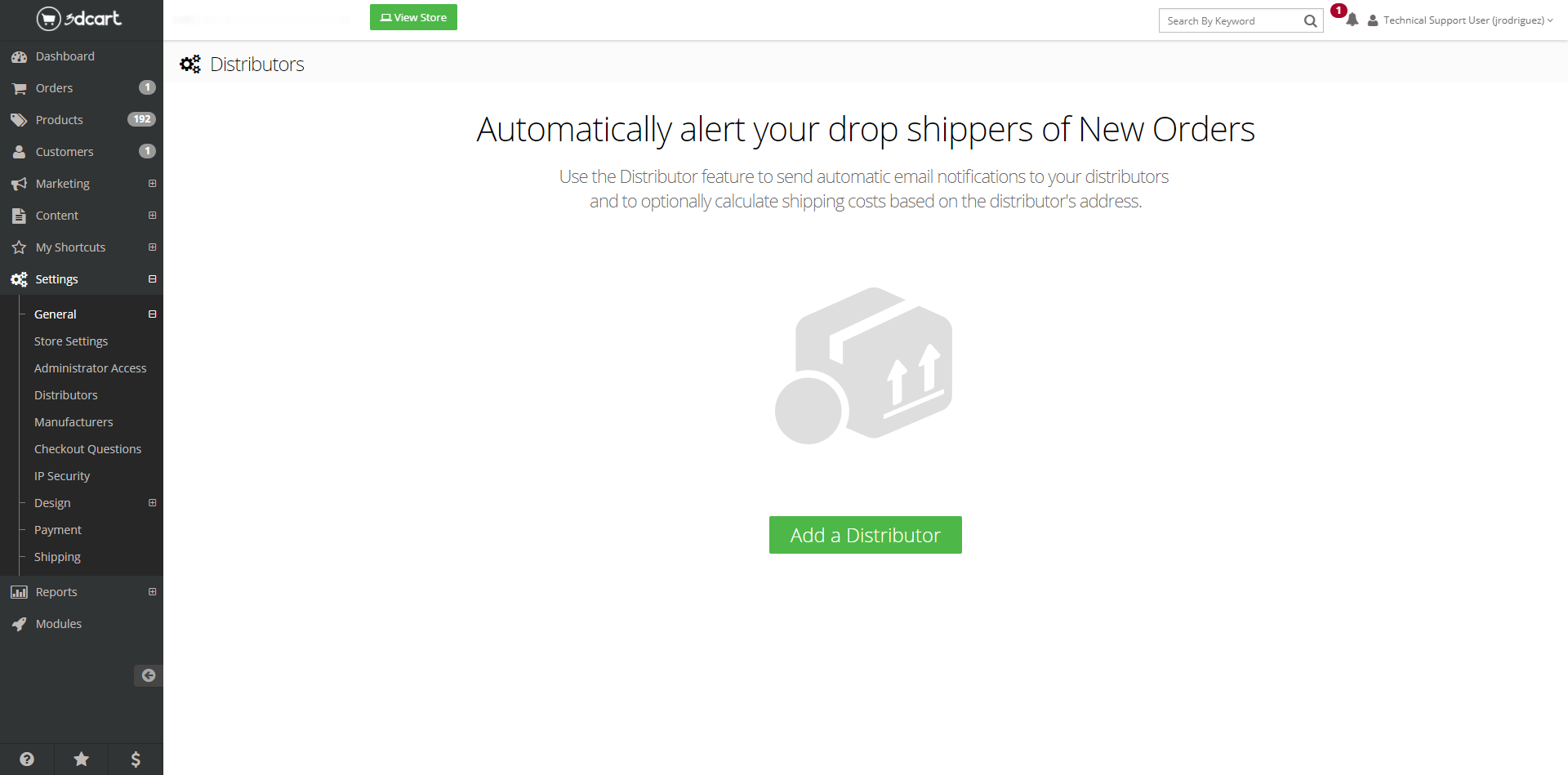 Shift4Shop makes drop shipping easy by including configurable options to instantly email a supplier when you receive a new order. You can also use the distributor’s address as the origin address for calculating shipping.