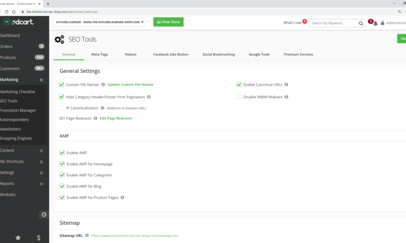 First, ensure that you’re using a Core theme. Then log into your Shift4Shop Online Store Manager, navigate to Marketing and then SEO Tools, and check the “Enable AMP” checkbox within the AMP section. Then, check the rest of the boxes to enable AMP in each section of your store you desire. Don’t forget to save your changes!