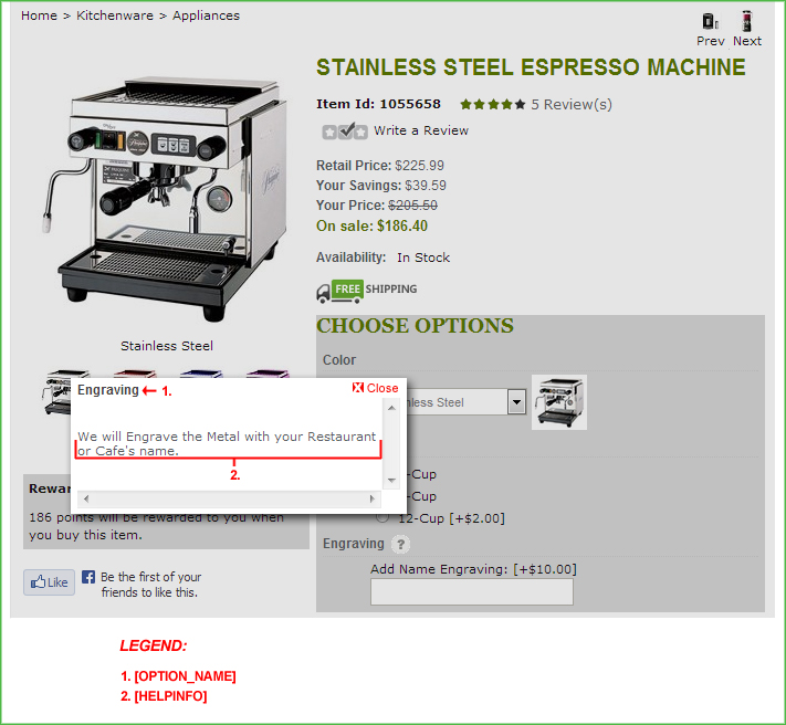 Purpose: This template will display a popup with help information pertaining to a specific option. You can specify a help popup for every “option” in a product. The content is defined by going to the Info button of a specific option.
