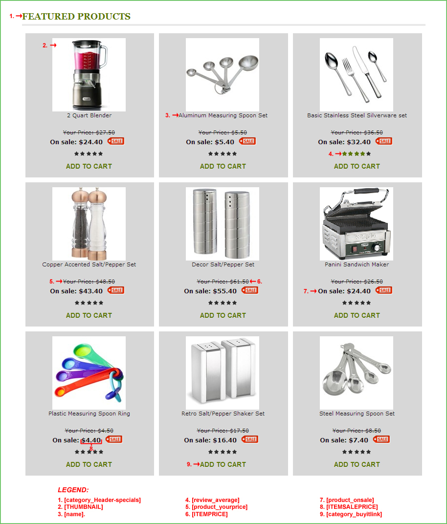 Notes: The template is identical to a category template, with the difference that some code blocks such as paging are not included; as they are not necessary. The list of code blocks are below, for more details on how to customize each block, please review the category_x.html notes.
