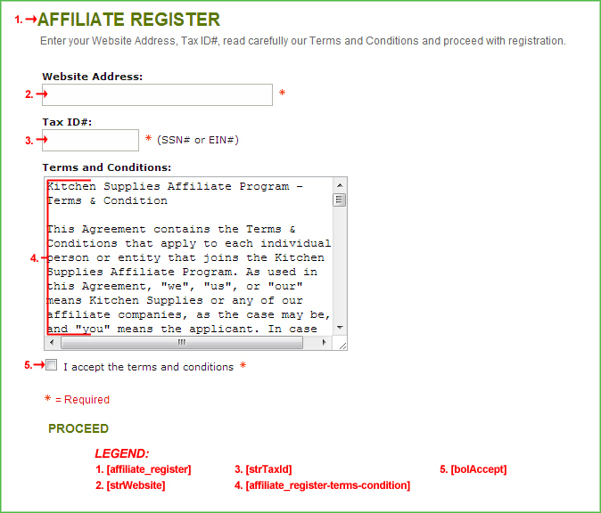 Purpose: This template controls the display of the registration page when users signup for an Affiliate Account.