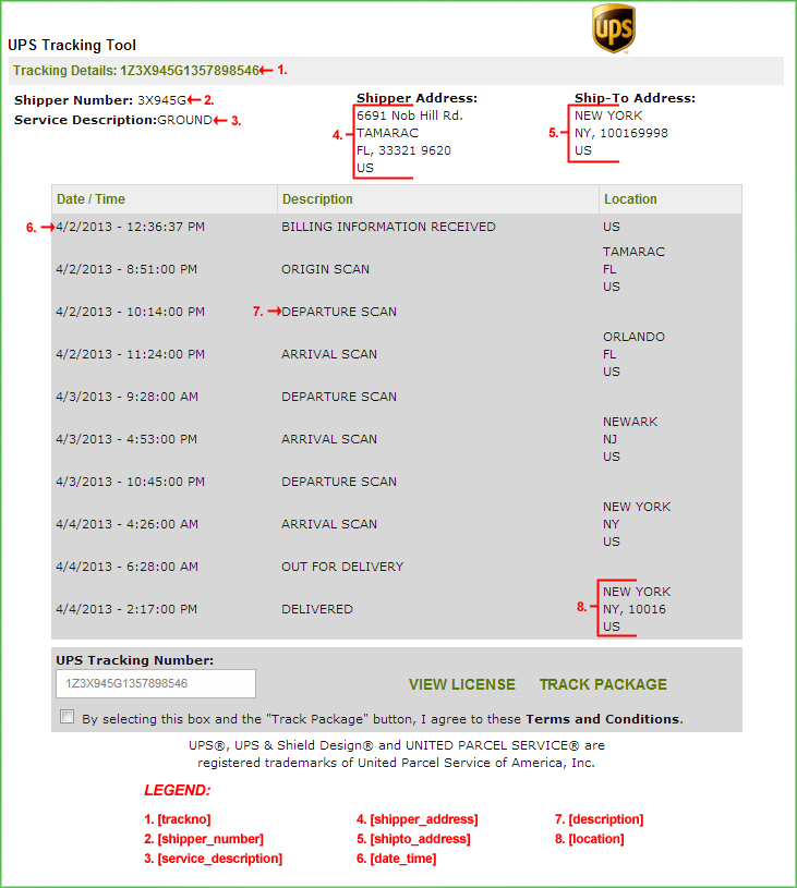 Purpose: This template is used to display the order's tracking information when tracking an order that is shipped via UPS.