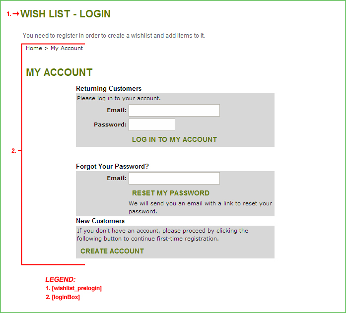 Purpose: This template is displayed when a customer attempts to add an item to their wish list, but has not yet logged into their store account.